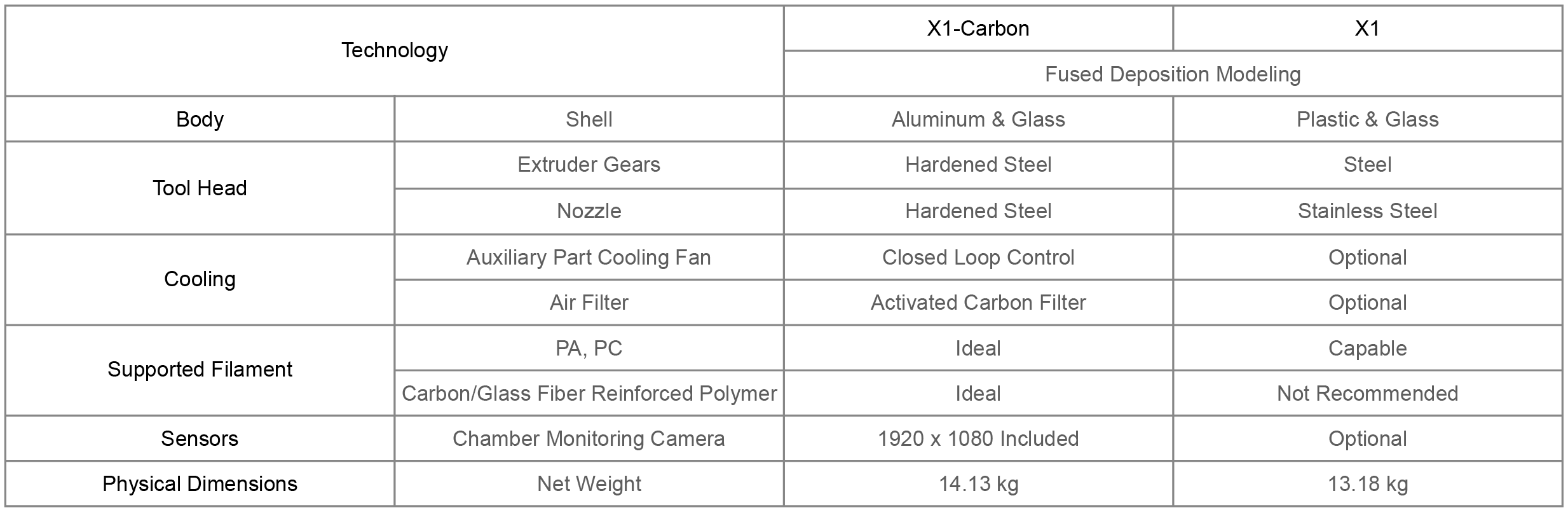 The Bambu Lab X1 Carbon edition comes with a hardened steel extruder and is able to print abrasive filaments such as carbon fiber.