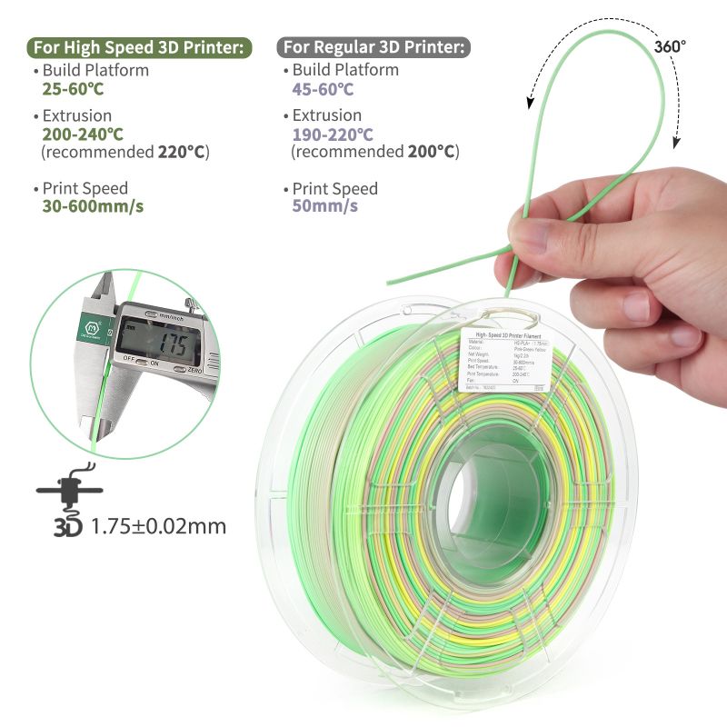 2. High-speed filament has good adaptability with beautiful rainbow colour.