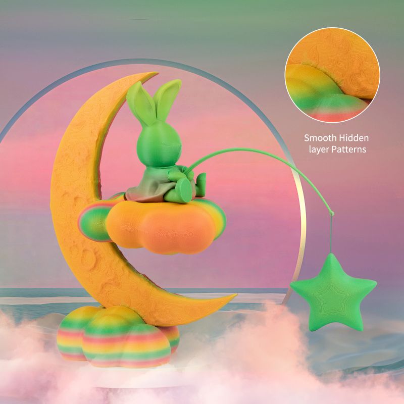 3D printing speed, up to 600mm/s, greatly improving 3D printing speed and saving printing time. Beautiful rainbow colours will appear on a large pattern as new things with new ideas.