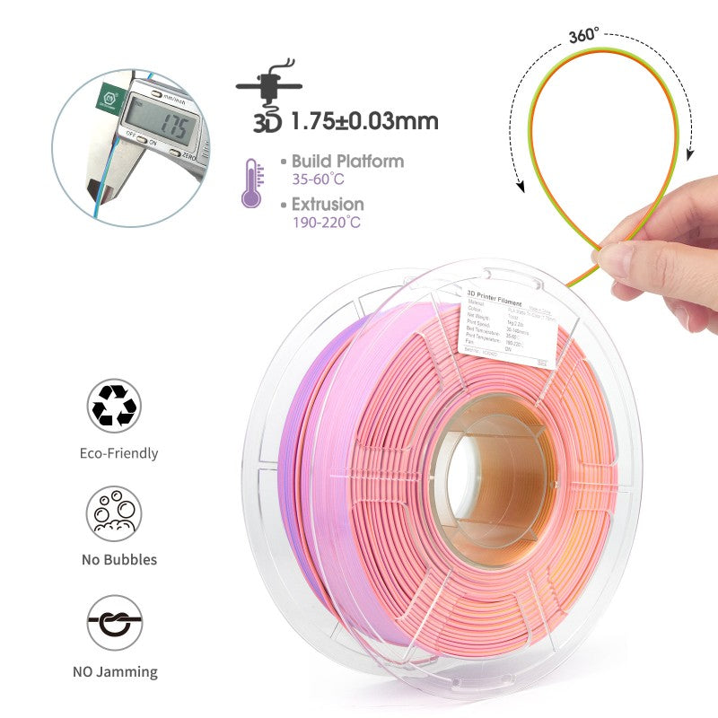 NEW - iSANMATE PLA Matte Tri-colour is a high-speed PLA filament with a unique matte finish and a beautiful blend of three colours.