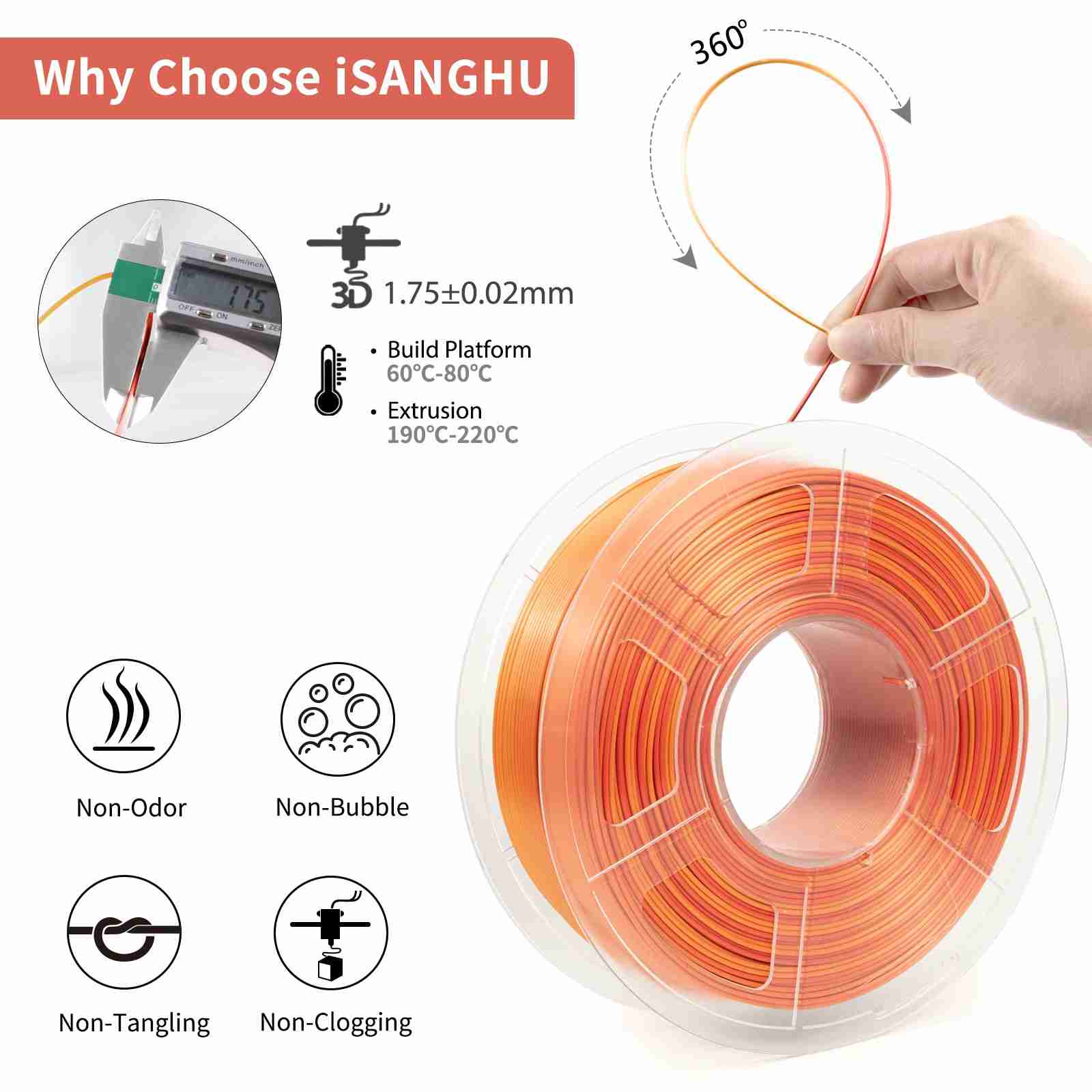 iSANMATE Silk Gradient Red-Gold PLA 1.75mm Filament 1kg roll