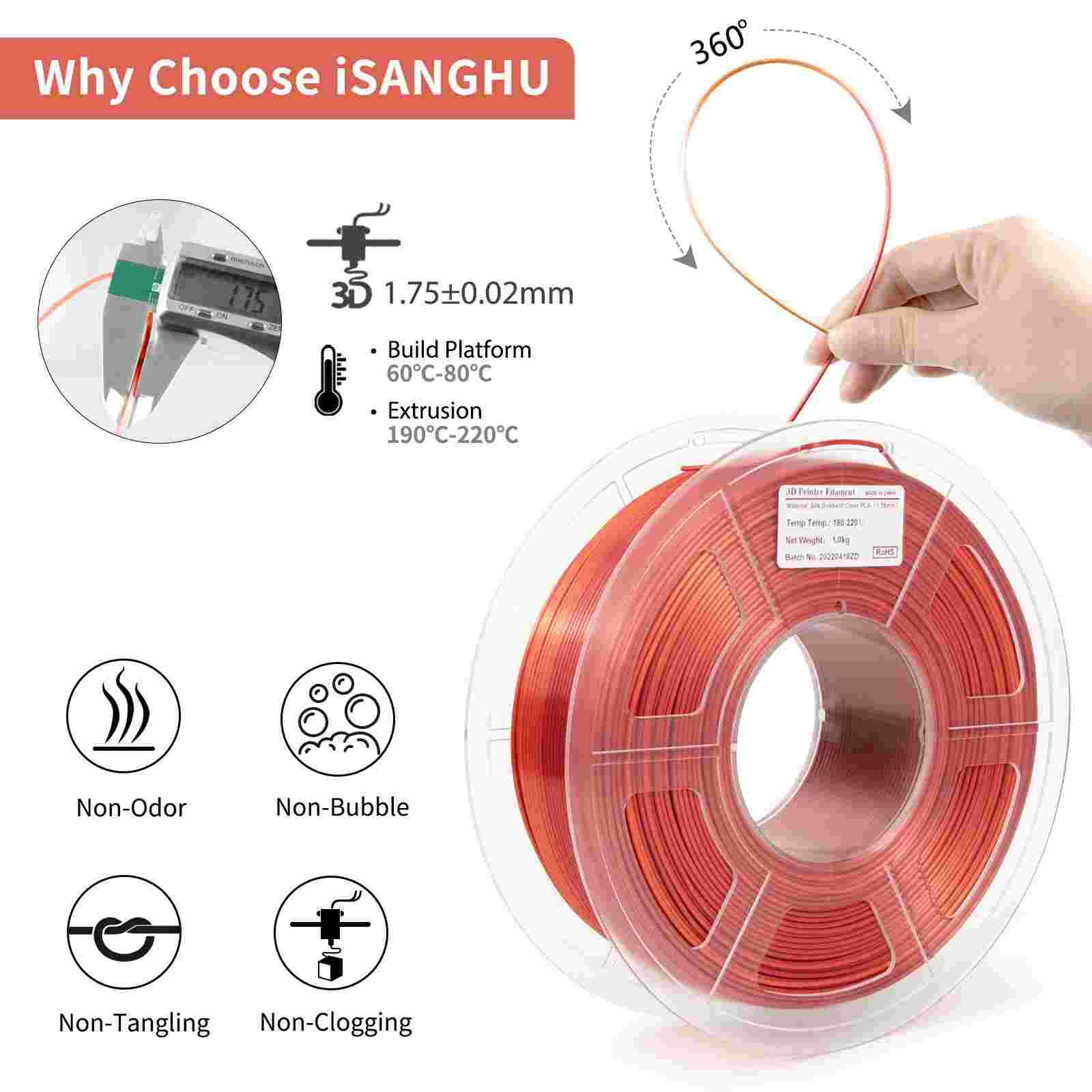 iSANMATE Silk Gradient Red-Orange PLA 1.75mm Filament 1kg roll