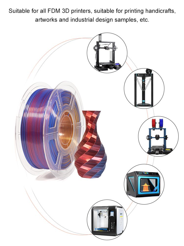 This filament features multiple colour gradient transitions, rapid colour change speed, excellent formability, and robust toughness. Additionally, it ensures a smooth printing experience with no bubbles, clogging, or warping.