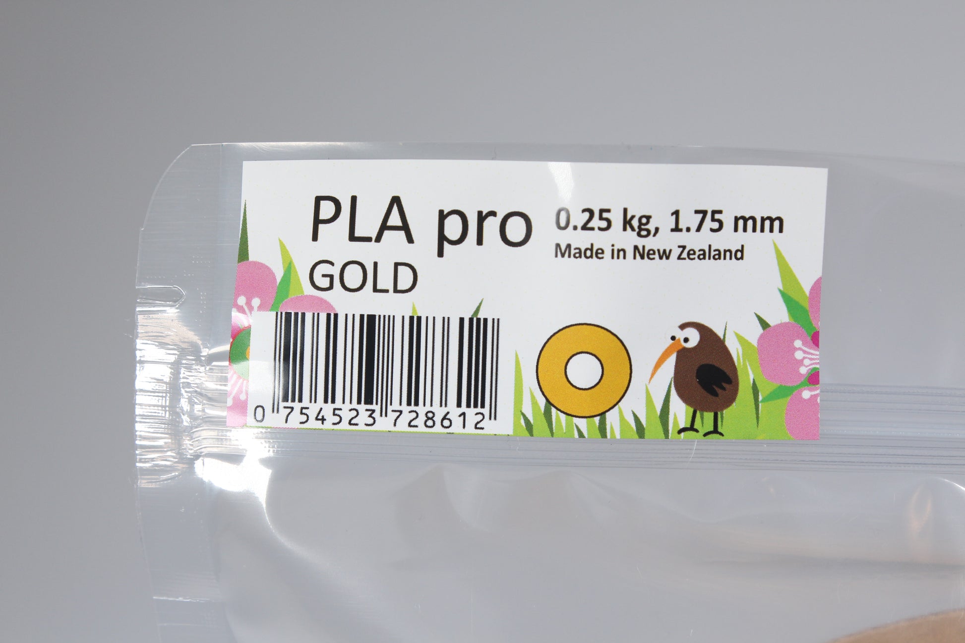 Gold PLA pro 3D printing filament, 250 g, 1.75 mm (±0.05 mm tolerance).
