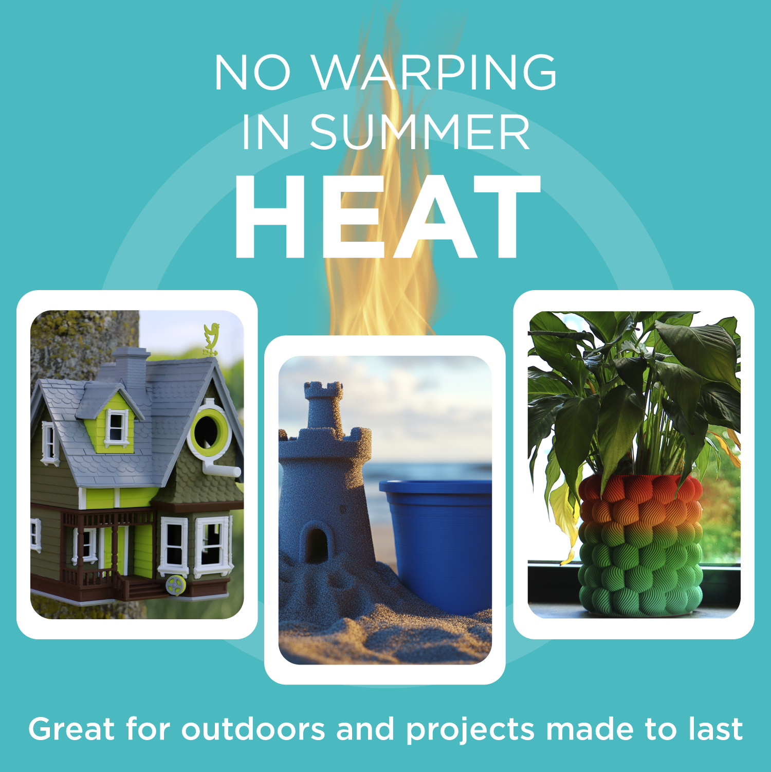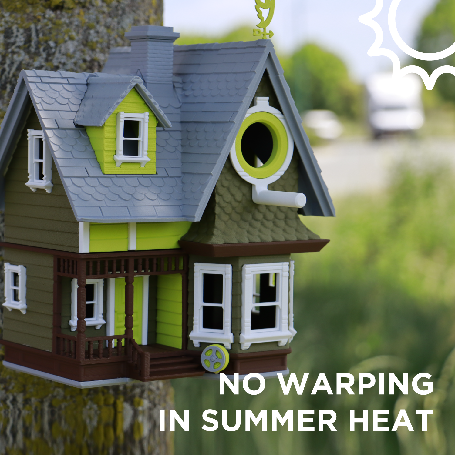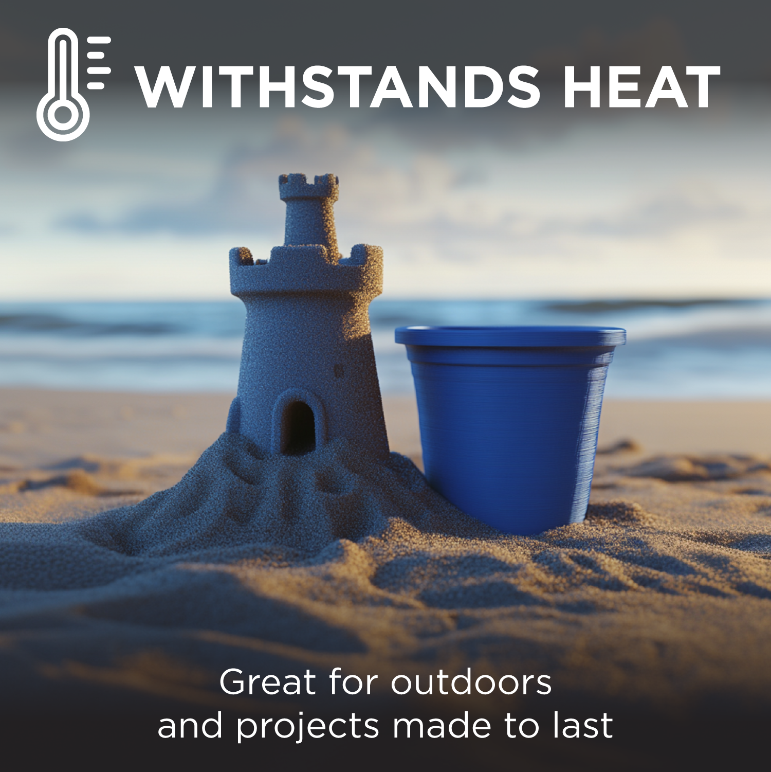 - Heat stability up to 130°C (keeps its shape with no load) right off the printer, defined by vicat softening temperature.
