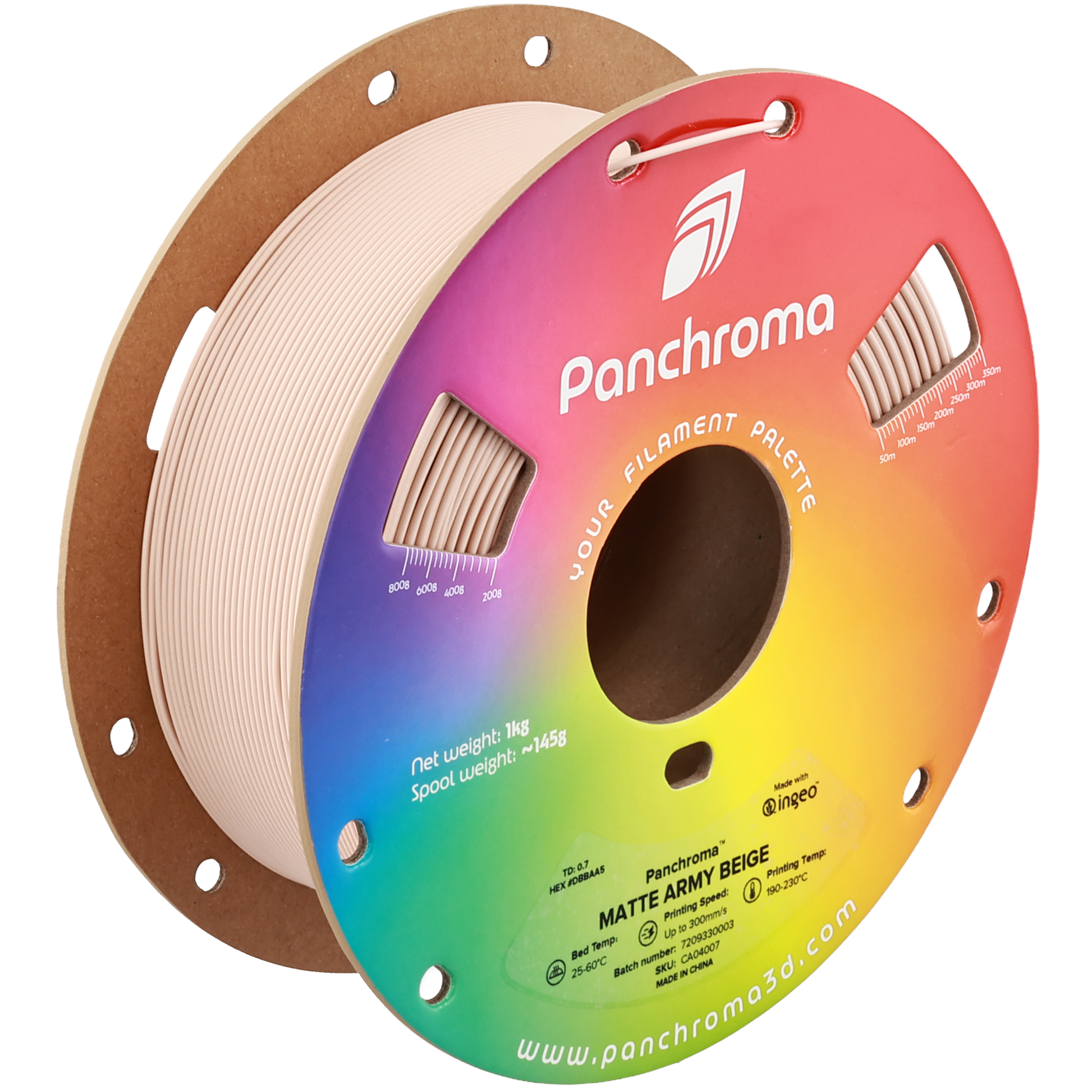 Panchroma™ Matte is a bioplastic based 3d printing filament designed from the ground up to create the next generation of PLA, providing ease of use, printing quality, speed and reliability.